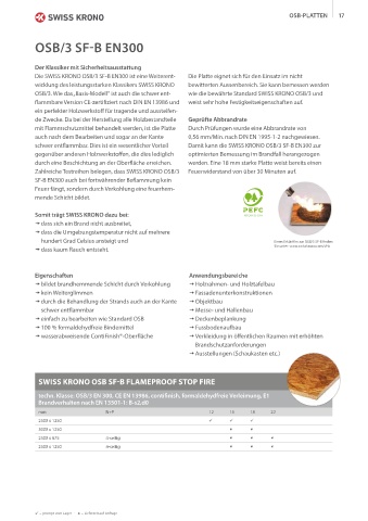 schwer entflammbar. Dies ist ein wesentlicher Vorteil Damit kann die SWISS KRONO OSB/3 SF-B EN300 zur