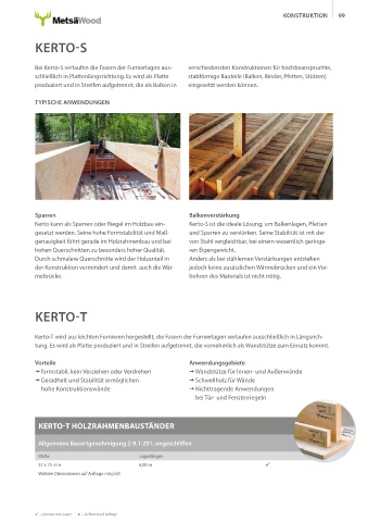 Bei Kerto-S verlaufen die Fasern der Furnierlagen aus- verschiedensten Konstruktionen für hochbeanspruchte,