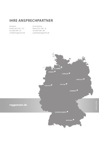 IHRE ANSPRECHPARTNER Erik Holzer Pascal Sperling Telefon 0421 5185 - 123 Telefon 0421 5185 - 55 Fax: 0421 5185 - 52 Fax: 0421 5185 - 935 e.holzer@roggemann.de p.sperling@roggemann.de 07/2023- #213140 roggemann.de