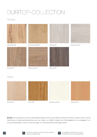 132 ! *Oberflächen neu erleben: Die DuriTop Struktur Oberflächen ! Die abgebildeten Oberflächen können durch
