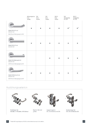 * Bohrung inklusive bei den Türen Optima, Lombardo, Venetia, Blankenese, sowie Typ 42, Typ 48 und Typ 70. ! ** Modell M01 Langschildgarnitur ES1/ES2 ist neben Edelstahl matt auch in Alu erhältlich. 147