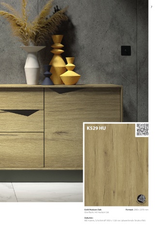 7 K529 HU Gold Hudson Oak Format: 2800 x 2070 mm Oberfläche: HU Hudson Oak Zubehör: ABS Kanten, Schichtstoff 3050 x 1320 mm (abweichende Struktur RW)