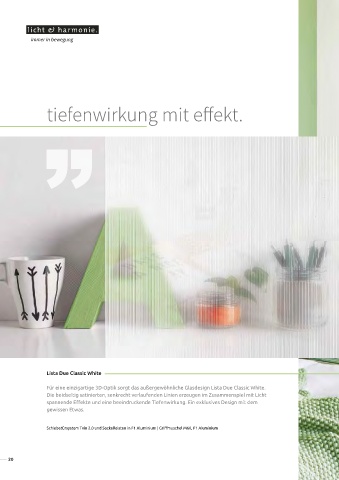 Für eine einzigartige 3D-Optik sorgt das außergewöhnliche Glasdesign Lista Due Classic White.
