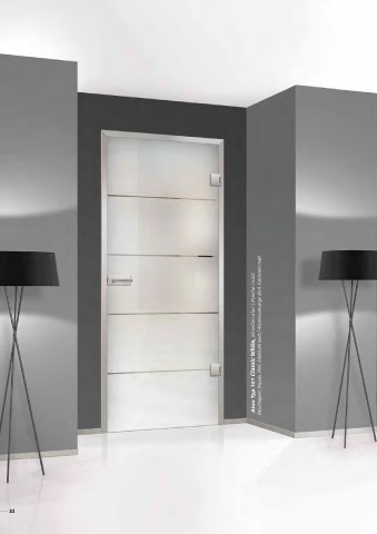 32 Atos Typ 101 Classic White, Streifen klar | Fläche matt Beschlagset: Impuls, ähnl. Edelstahl matt | Aluminiumzarge ähnl. Edelstahl matt