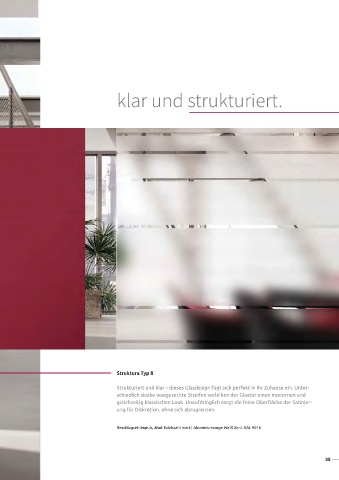 schiedlich starke waagerechte Streifen verleihen der Glastür einen modernen und