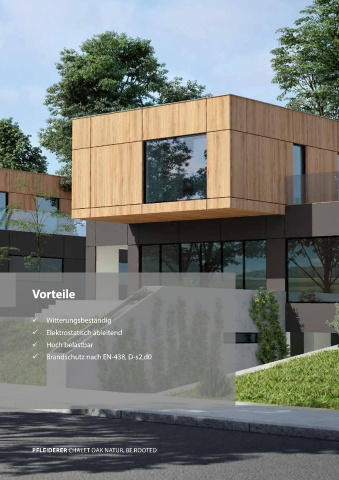 300 3 DUROPAL // EXTERIOR COMPACT Vorteile Witterungsbeständig Elektrostatisch ableitend Hoch belastbar Brandschutz nach EN-438, D-s2,d0 PFLEIDERER CHALET OAK NATUR, BE ROOTED