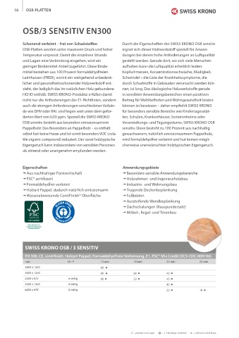HCHO enthält. SWISS KRONO-Produkte erfüllen damit in sensiblen Anwendungsbereichen einen positiven