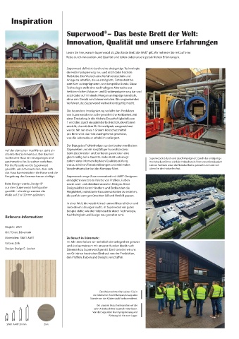 Für die Fassade wurde Superwood was zu schönen Fassadenlösungen und minimalen kleinen Partikeln unter die Holzober äche gebracht und setzt sich
