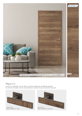 Passend zur Türoberfläche wird das Inlay in der gleichen Richtung wie die Holzoptik eingelegt.