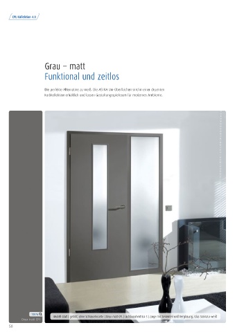 Modell Glatt | gefälzt, ohne Schlüsselrosette | Onyx matt CPL | Lichtausschnitt LA 5 | Zarge mit Seitenteil und Verglasung, Glas Satinato weiß