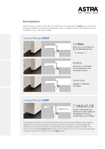 ASTRA-CPL-Türen- und Zargen erhalten Sie in allen Oberflächen mit der innovativen smart kante mit ca. 2-mm-Radius.