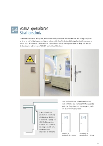 trennen. Durch Bleieinlagen im Türblatt und in der Zarge wird die schädliche Strahlung abgeschirmt und dringt nicht hindurch.