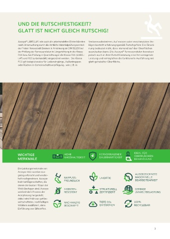 der Prüfung der Terrassendielen in Längsrichtung in die Klasse ausrutschen kann. Die Accoya Terrassendielen beweisen