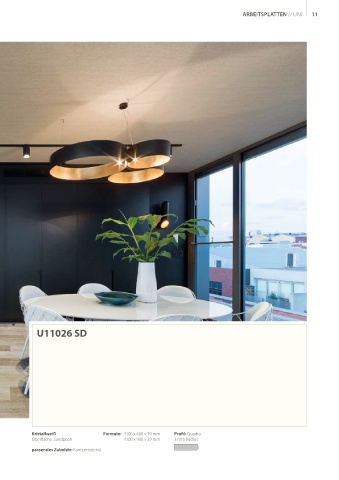 ARBEITSPLATTEN // UNI 11 U11026 SD Kristallweiß Formate: 4100 x 600 x 39 mm Profil: Quadra Oberfläche: Sandpearl 4100 x 900 x 39 mm 3 mm Radius passendes Zubehör: Kantenmaterial