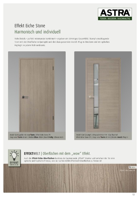 Auch die Effekt-Eiche Oberflächen besitzen die faszinierende „Effekt“ Struktur und verleihen der Tür eine