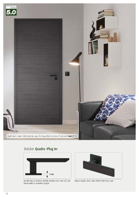 Bei den Plug In Drückern sind die Rosetten nur 5 mm dick und Plug in Quadro, Black, Inlay Effekte Eiche Nero quer