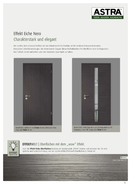 Auch die Effekt-Eiche Oberflächen besitzen die faszinierende „Effekt“ Struktur und verleihen der Tür eine