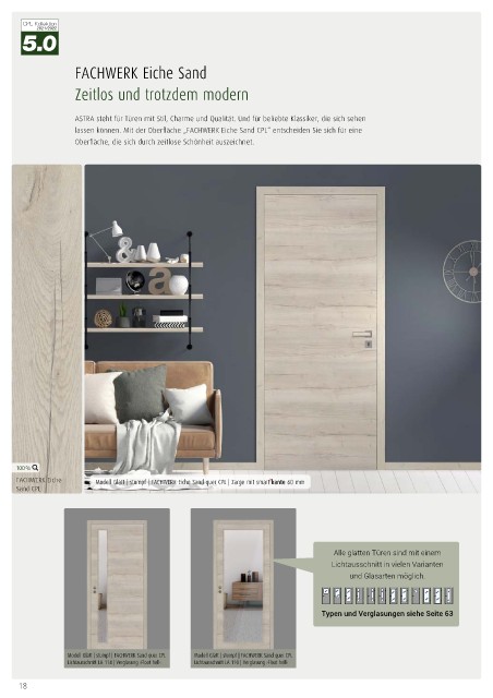 FACHWERK Eiche Modell Glatt | stumpf | FACHWERK Eiche Sand quer CPL | Zarge mit smart kante 60 mm
