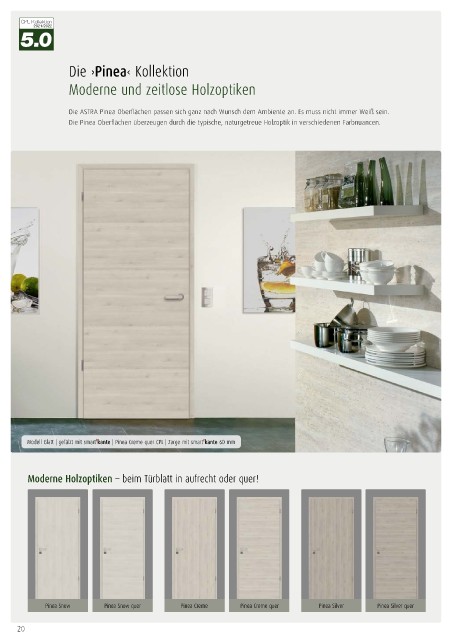 Die Pinea Oberflächen überzeugen durch die typische, naturgetreue Holzoptik in verschiedenen Farbnuancen.