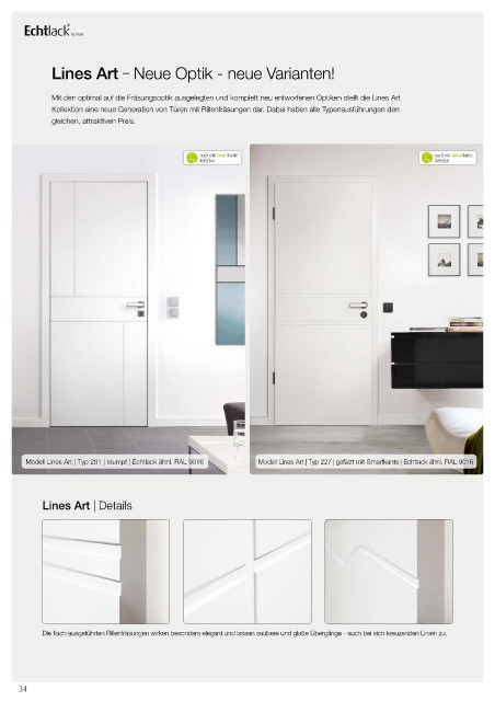 Modell Lines Art | Typ 288 | stumpf | Echtlack ähnl. RAL 9016Modell Lines Art | Typ 281 | stumpf | Echtlack ähnl. RAL 9016 Modell Lines Art | Typ 227 | gefälzt mit Smartkante | Echtlack ähnl. RAL 9016