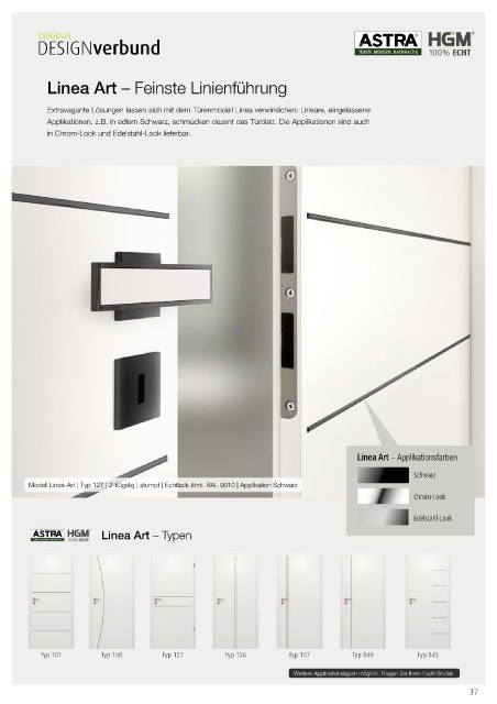 Modell Linea-Art | Typ 127 | 2-flügelig | stumpf | Echtlack ähnl. RAL 9010 | Applikation Schwarz