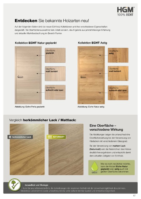 Auf den folgenden Seiten sind die neuen Echtholz Kollektionen und ihre verschiedenen Eigenschaften