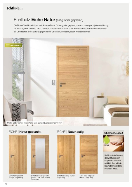 Modell Glatt | stumpf | Eiche Natur quer geplankt | Zarge stumpf, 60 mm
