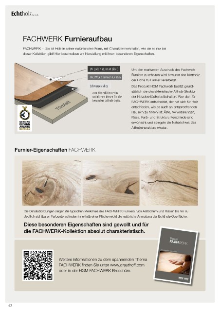 Die Detailabbildungen zeigen die typischen Merkmale des FACHWERK Furniers. Von Astlöchern und Rissen bis hin zu