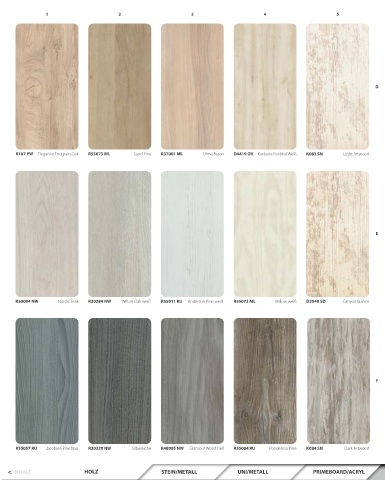 R50094 NW Nordic Teak R20284 NW Wilton Oak weiß R55011 RU Anderson Pine weiß R55072 ML Willow weiß D2940 SD Canyon Bianco