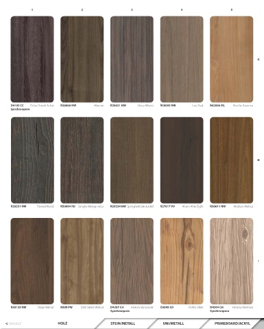 R30135 NW Okapi Walnut K009 PW Dark Select Walnut D4207 CH Hickory Vancouver D3045 SD Fichte Silber D4204 CH Hickory Montana