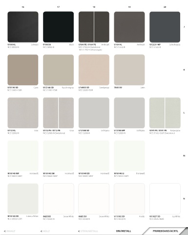 U190 VL Schwarz 0190 SU Black U164 PE / 0164 PE Anthrazit U164 VL Anthrazit U12231 MP Schiefergrau