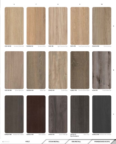 R20100 NW Eiche Style zimt R20286 NW Italian Oak D4425 OV Esche Grau R20031 RU Sonoma Eiche trüffel K366 PW Fossil Evoke Oak