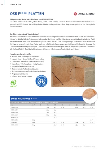 bestände anfällt, wird auch die Premium-Qualität SWISS KRONO OSB/ F**** gefertigt. Zusätzlich zum E1 Grenzwert