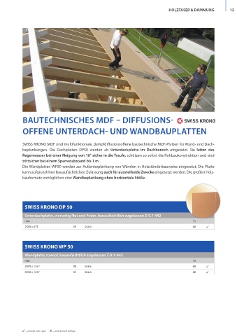 SWISS KRONO MDF sind multifunktionale, dampfdiff usionsoff ene bautechnische MDF-Platten für Wand- und Dach-