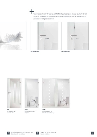 ! ! Weitere Verglasungen: Parsol grau, Silvit weiß, ! *Modelle 2601 nicht in der Glasart 107