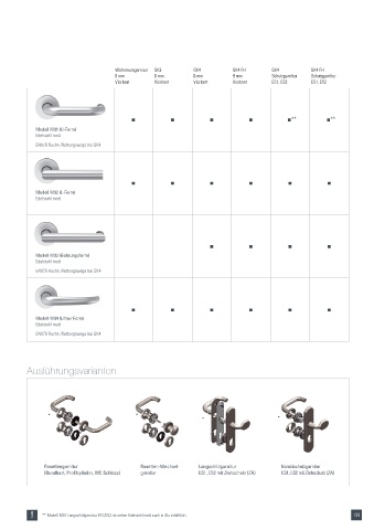 * Bohrung inklusive bei den Türen Optima, Lombardo, Venetia, Blankenese, sowie Typ 42, Typ 48 und Typ 70. ! ** Modell M01 Langschildgarnitur ES1/ES2 ist neben Edelstahl matt auch in Alu erhältlich. 139