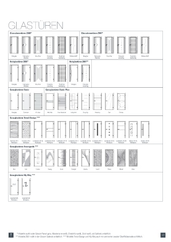! * Modelle auch in der Glasart Parsol grau, Mastercarré weiß, Chinchilla weiß, Silvit weiß und Satinato erhältlich. 147
