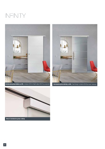 InFInITy Schiebetürsystem Infinity v.d.W., Lombardo 2810-8, Weiß lackiert WL10 (nach RAL 9010) Schiebetürsystem Infinity v.d.W., Trend-Design Lombardo 29-33 (mit einseit. Satinierung) Detail: Schiebetürsystem Infinity 88