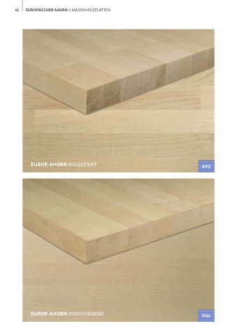 42 EUROPÄISCHER AHORN // MASSIVHOLZPLATTEN EUROP. AHORN KEILGEZINKT KVZ EUROP. AHORN DURCHGEHEND DGL x = prompt vom Lager . o = 1 - 2 Wochen Lieferzeit . u = auf Anfrage . o + u = ggf. Frachtkosten anfallend